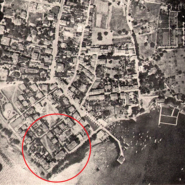 | 1935 yılında çekilmiş bu hava fotoğrafında “yangın yeri” |