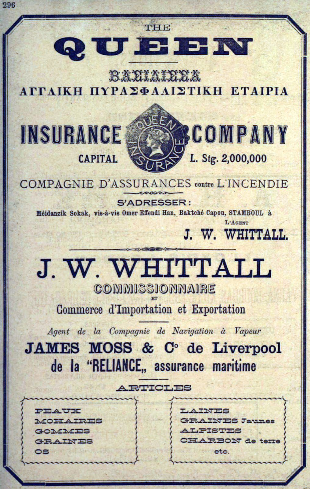 James John Whittall en büyük oğlu James William Whittall’ü (1838-1910) İzmir’deki şirketlerinde yetiştirdikten sonra 1860’da aile şirketi C. Whittall & Co.’nun İngiltere’deki çıkarlarını temsil etmek ve Kuru mal ve Kimyasal ticareti yapan James Collier Harter & Co. Şirketine katılmak üzere Manchester'a göndermişti. 1862’de İzmir’e dönen James William Whittall 9 Nisan 1862’de İzmir Buca’lı Samuel Barker’ın kızı Edith Anne Barker ile evlenmiş, çiftin 1863’te İstanbul Moda’da Edith Mary ve Ethel Marianne adlarında iki kızları olmuştu. 1864’te tekrar Manchester’a dönen ve Cheshire Bowdan’a yerleşen, James Collier Harter & Co. Şirketi ile ortaklık görüşmelerine başlayan James William Whittall’ün 20 Nisan 1864’te Frederick Edwin adında bir oğlu olmuştu. James William Whittall, 5 Temmuz 1864 tarihli “The London Gazzette”de yer alan bir habere göre 28 Haziran 1864’te Thomas Harter, James Collier Harter ve W. J. Harter ortaklığına, Jeremiah Bower ile birlikte 5. Ortak olarak imza atmıştı.